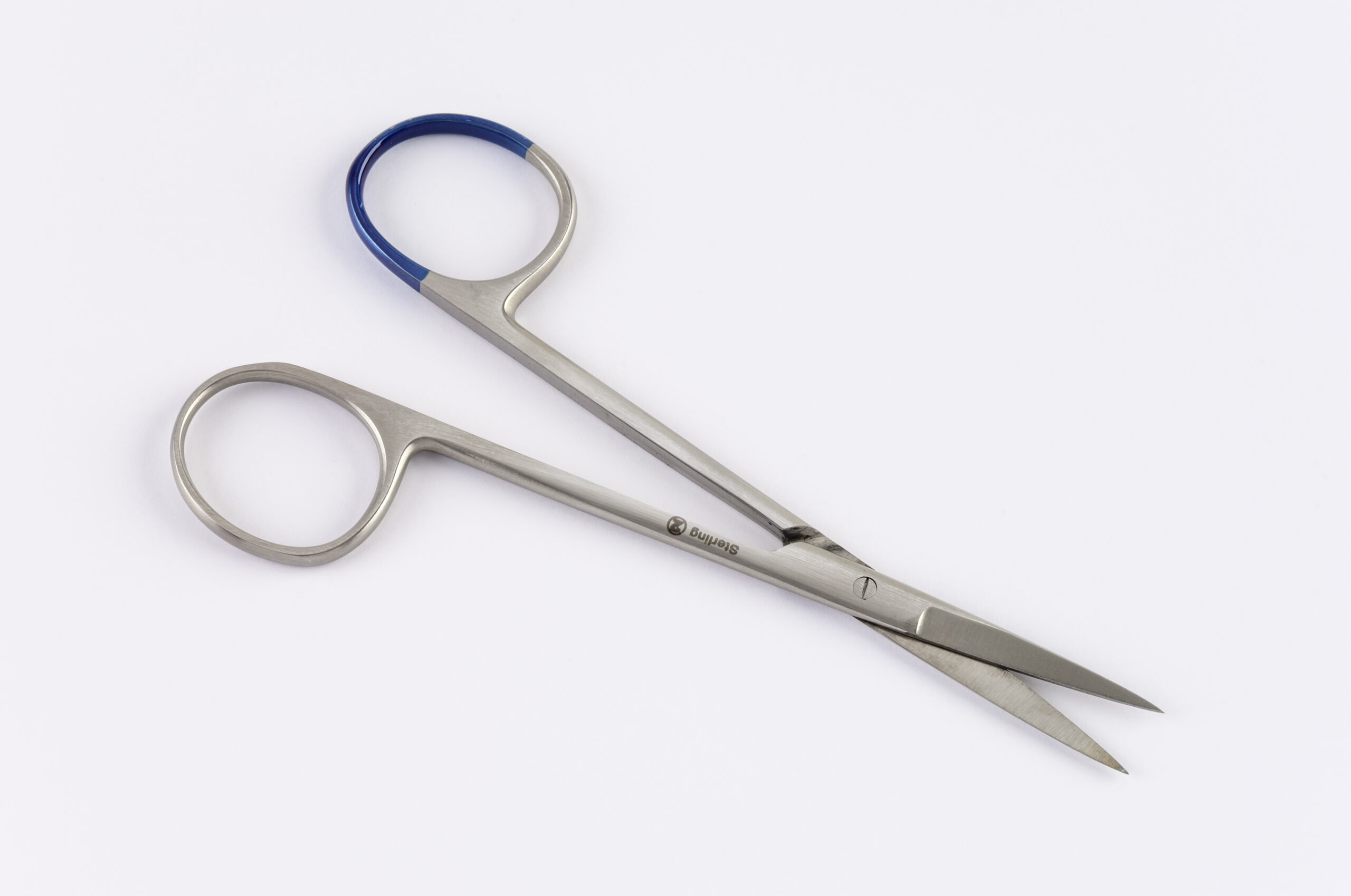 SOLO Single Use Iris Scissors 11cm, straight or curved. Stainless Steel, colour coded handles, sterile packed.